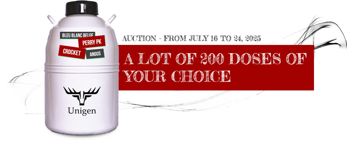 Unigen offers you an auction where only one lot is available: a semen tank with 200 doses of your choice. The semen tank is even included!