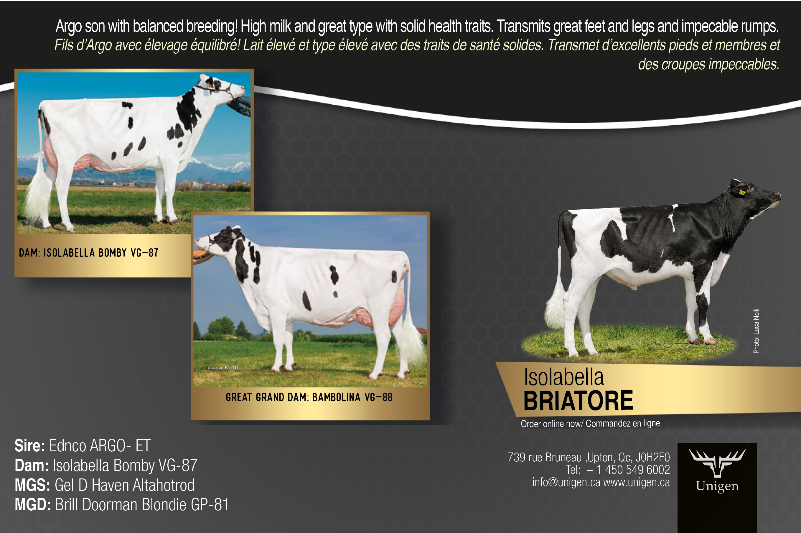 Argo son with balanced breeding! High milk and great type with solid health traits. Transmits great feet and legs and impecable rumps.