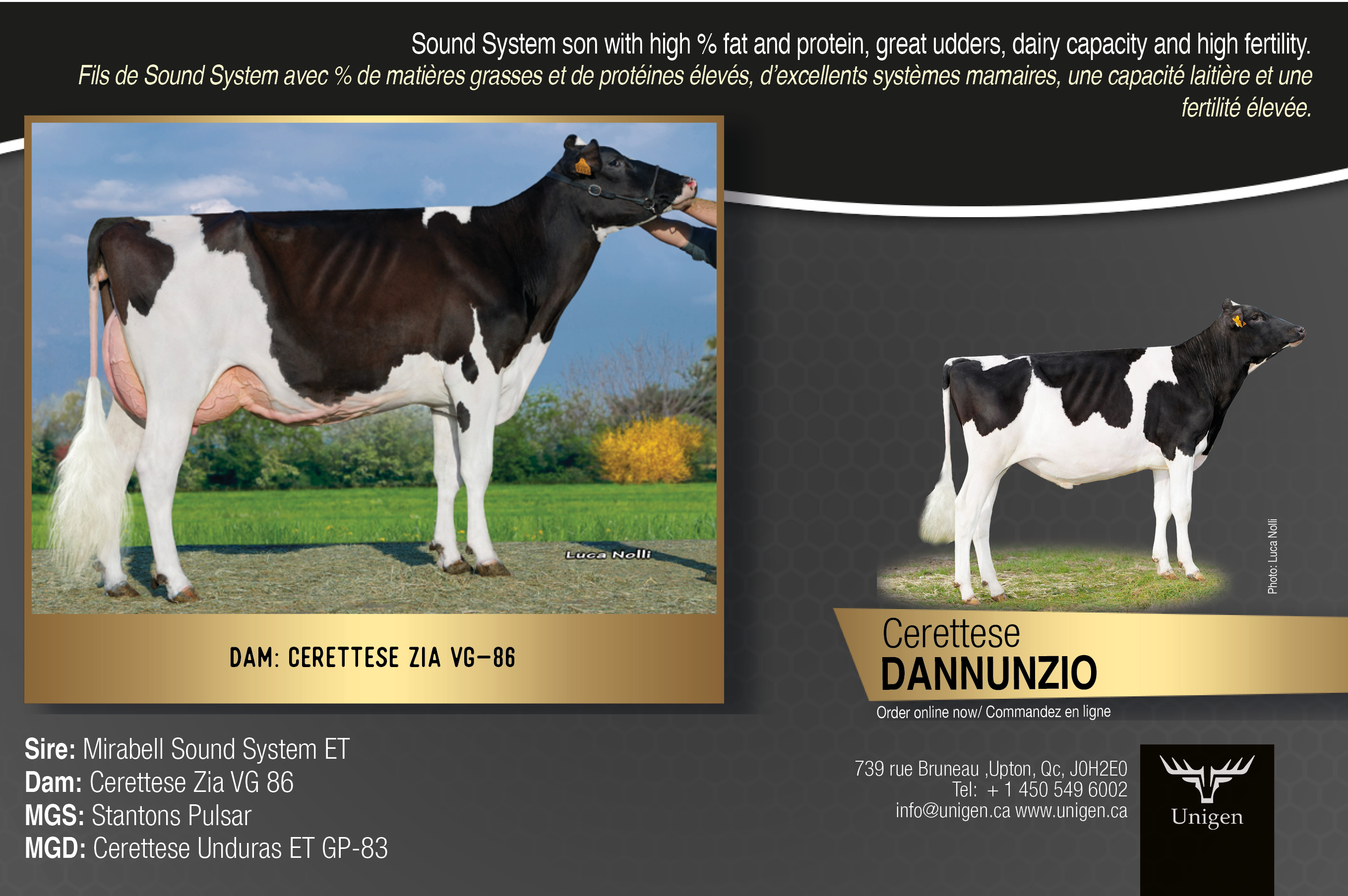 Sound System son with high % fat and protein, great udders, dairy capacity and high fertility.
