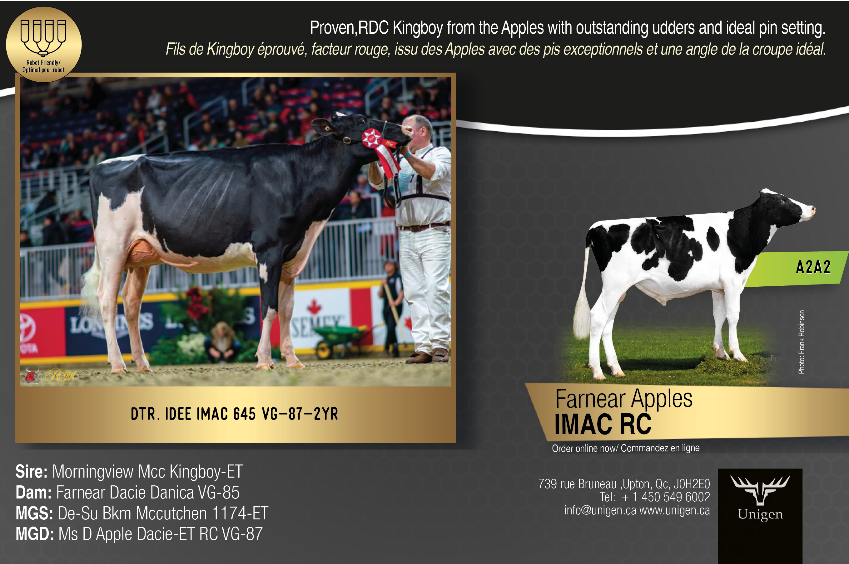 Fils de Kingboy éprouvé, facteur rouge, issu des Apples avec des pis exceptionnels, une angle de la croupe idéal et optimal pour robots.