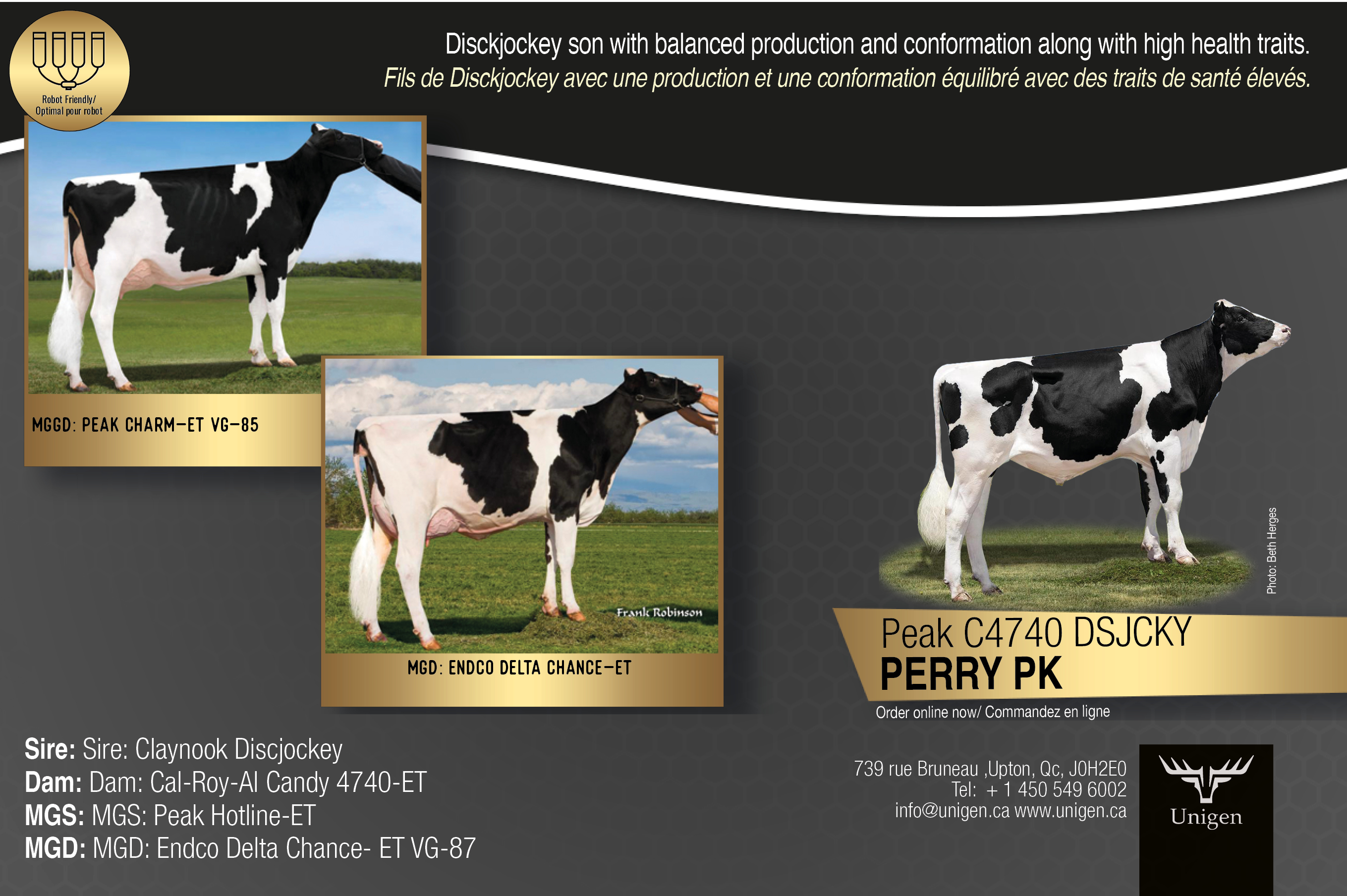 Fils de Disckjockey avec une production et une conformation équilibré avec des traits de santé élevés et optimal pour robot.