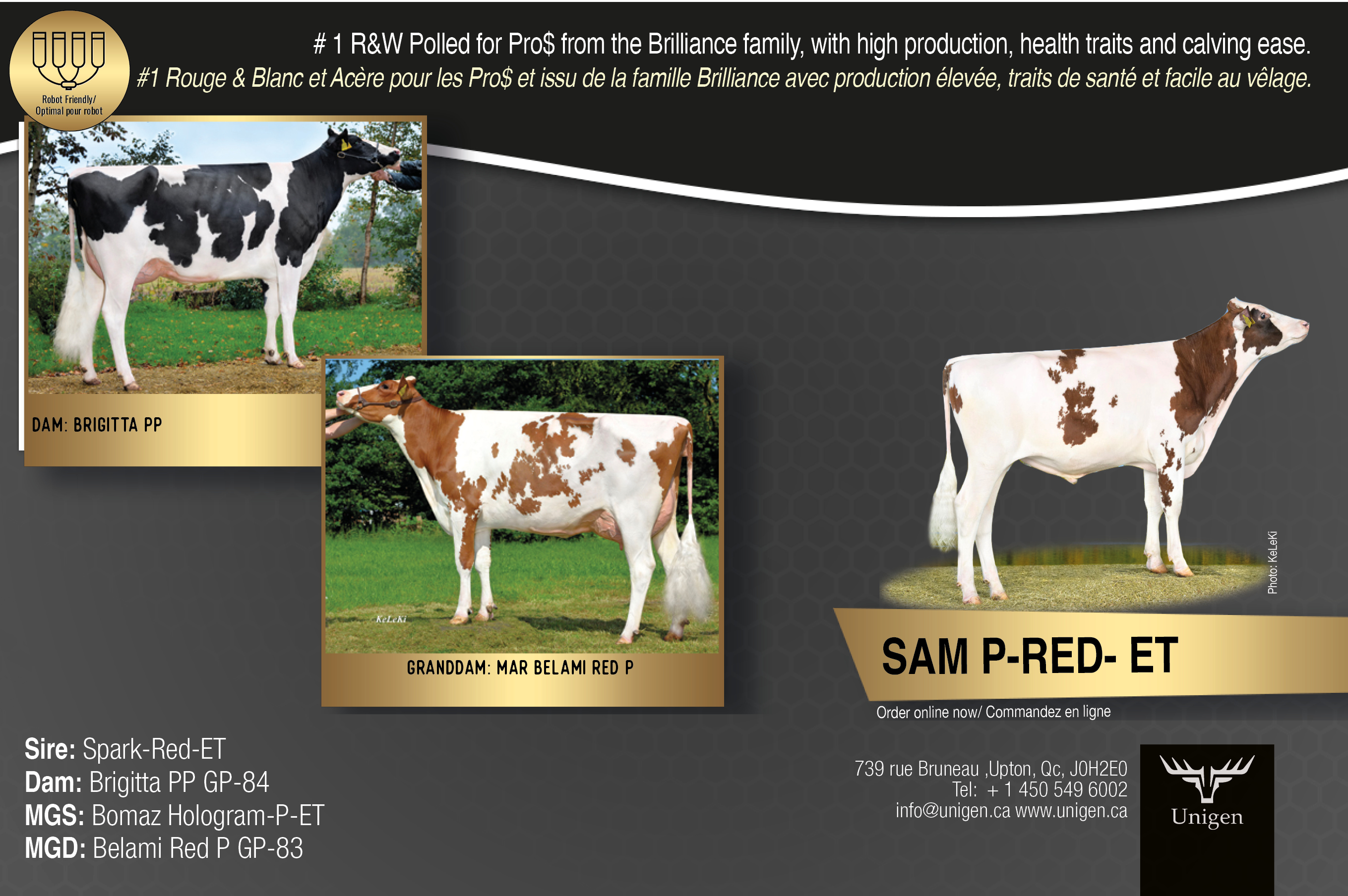 #1 Rouge & Blanc et Acère pour les Pro$ et issu de la famille Brilliance avec production élevée, traits de santé, optimal pour robots et facile au vêlage.