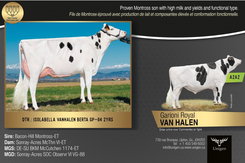 Voici notre liste complète de taureaux offerts par Unigen pour la race Holstein. Vous pouvez également jeter un coup d'oeil à notre portfolio en ligne ou obtenir de plus amples détails sur le taureaux souhaité en cliquant sur ce dernier dans la liste ici-bas.
