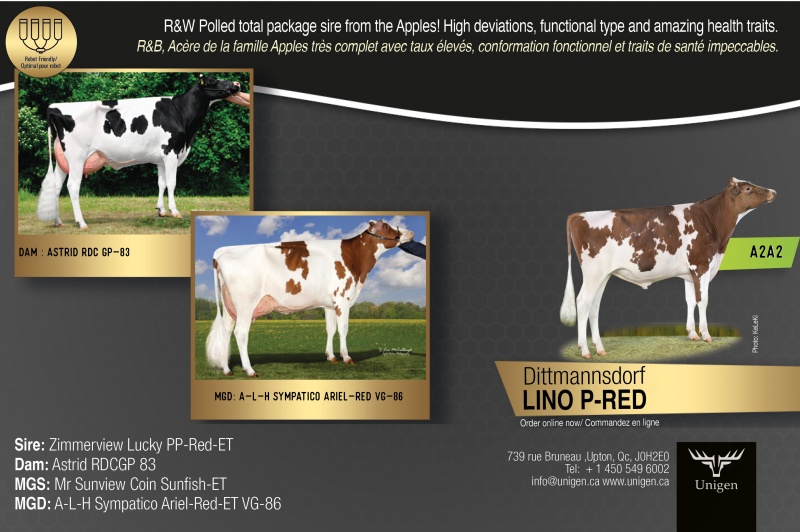 Voici notre liste complète de taureaux offerts par Unigen pour la race Holstein. Vous pouvez également jeter un coup d'oeil à notre portfolio en ligne ou obtenir de plus amples détails sur le taureaux souhaité en cliquant sur ce dernier dans la liste ici-bas.